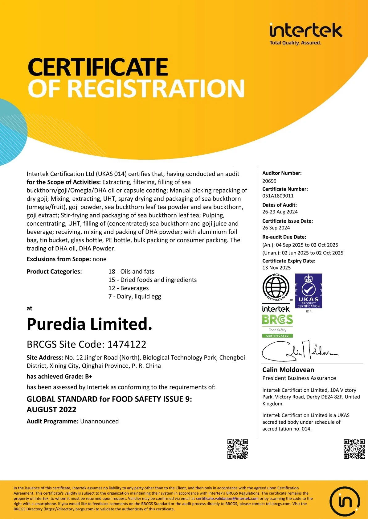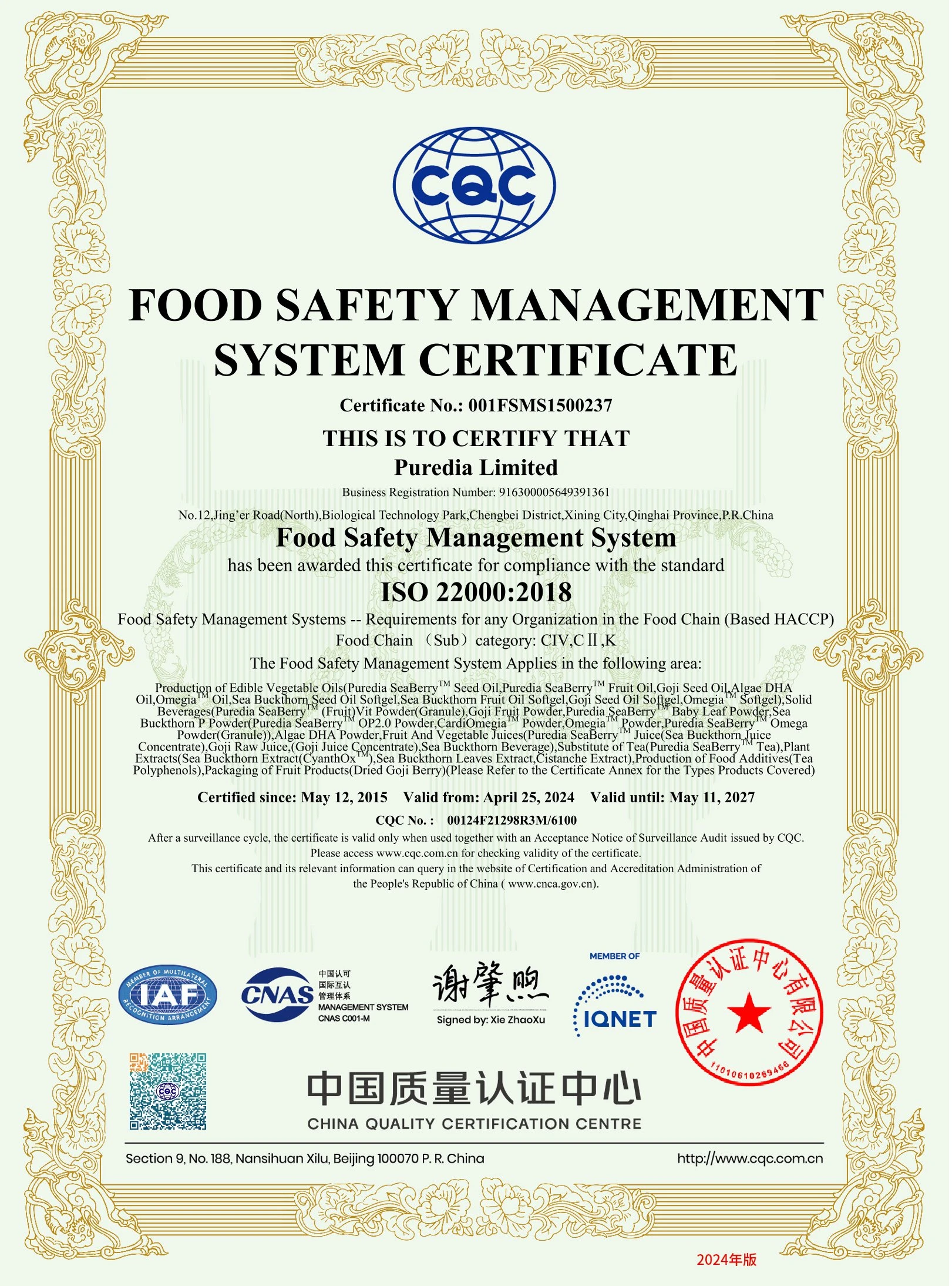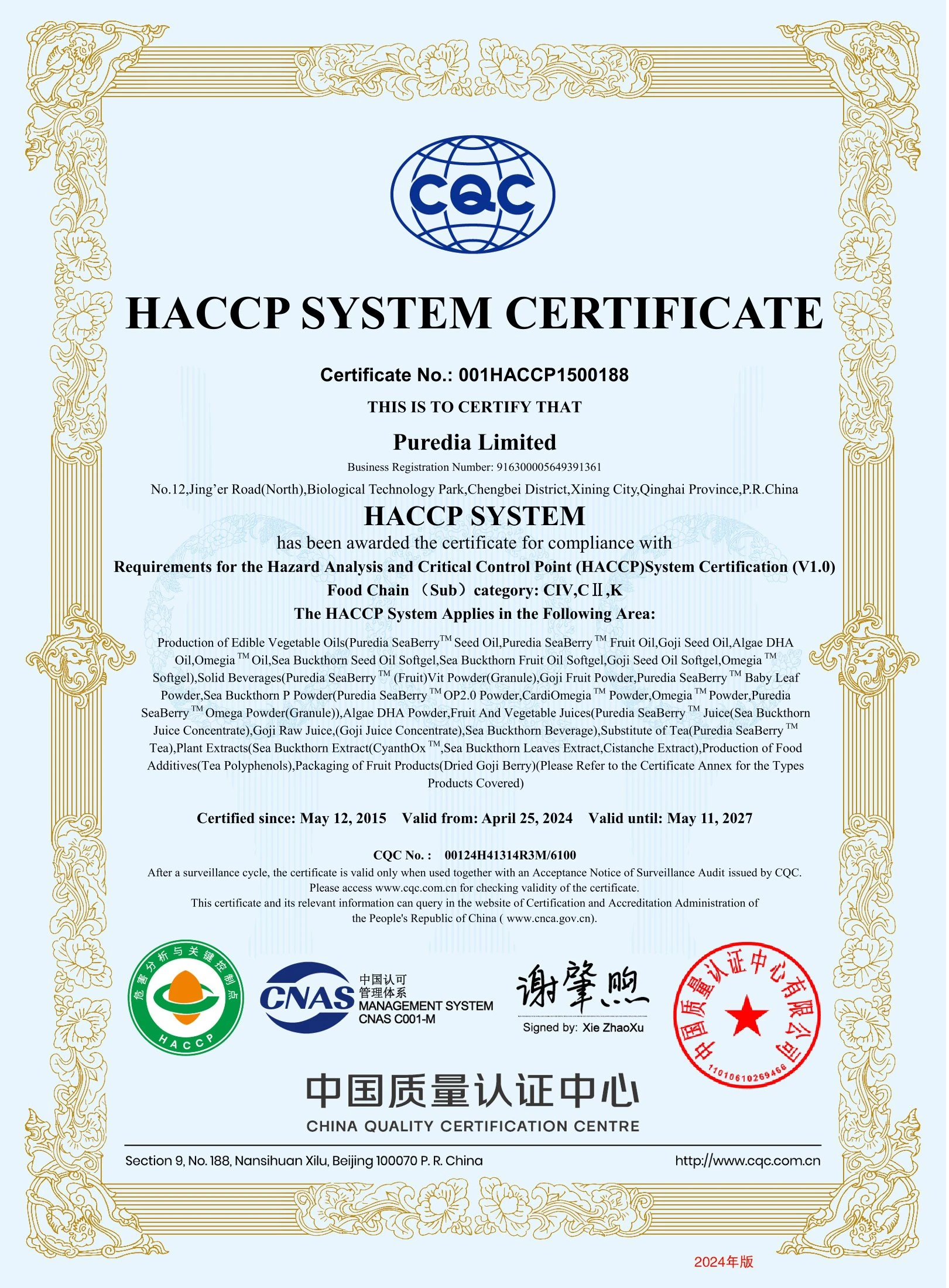 Vùng nguyên liệu Hắc Mai Biển – Sea Buckthorn đạt các tiêu chuẩn: GMP, ISO 9001, ISO 14001, ISO 22000, HACCP, Halal, Kosher, NSF.